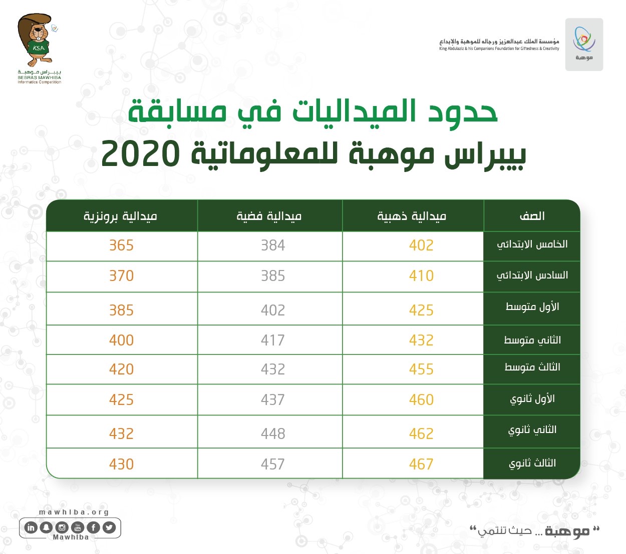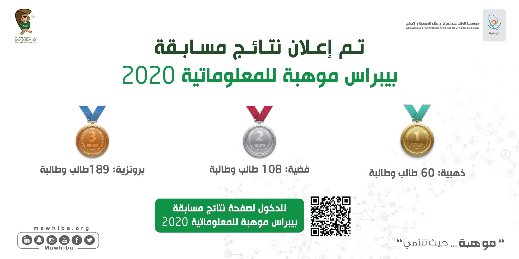 جاء ذلك في النتائج التي أعلنتها مؤسسة «موهبة» اليوم الخميس والتي ضمت 357 فائزا وفائزة بميداليات الطلبة الموهوبين الأوائل في هذه المسابقة العلمية.
