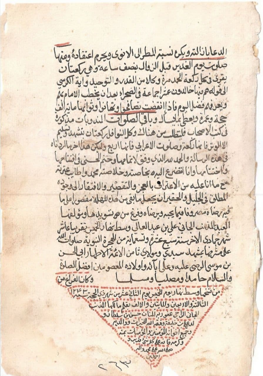 الرسالة ناقصة بعض الوريقات من الأخير في مبحث الفصل الخامس الميعاد والخاتمة» [21] .