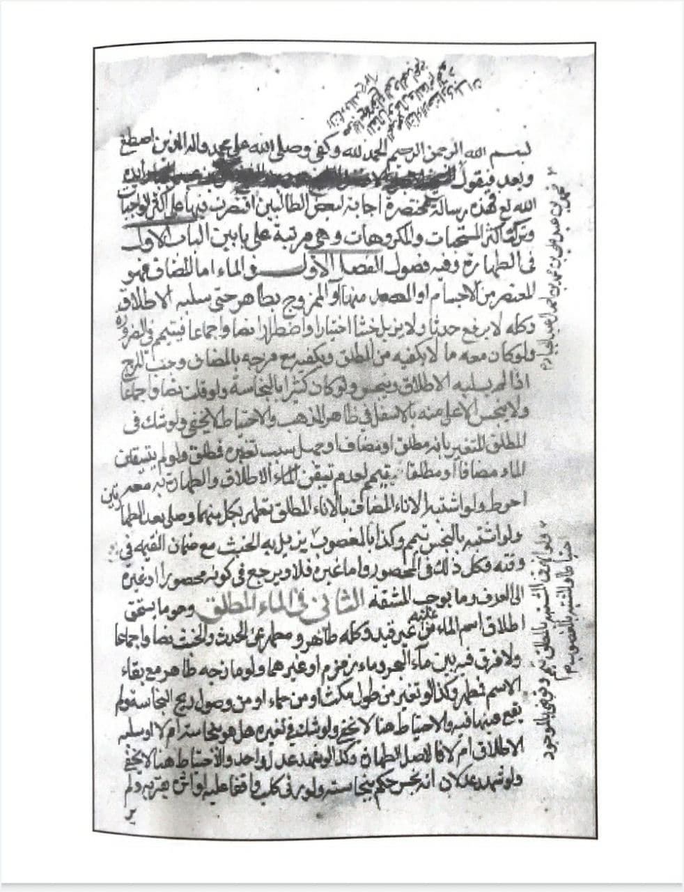 آخره: «فإن اغتفر مثل هذا فيجوز ما نقول وتكون الحائطة فيه كما سبق، هذا ما أراد الله رسمه بحسب ضيق الوقت وصلى الله على محمدٍ وآله الطاهرين والحمد لله رب العالمين».