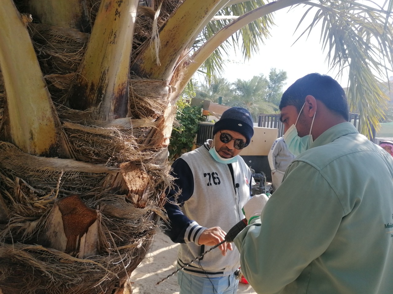 واختتم اليوم الحقلي م. مؤيد الحايك بتوضيح أحدث الطرق المستخدمة في علاج النخيل المصاب بواسطة جهاز ذات الضغظ المنخفض وتطرق لكيفية استخدام اقراص الفوسفيد الالمنيوم في العلاج.