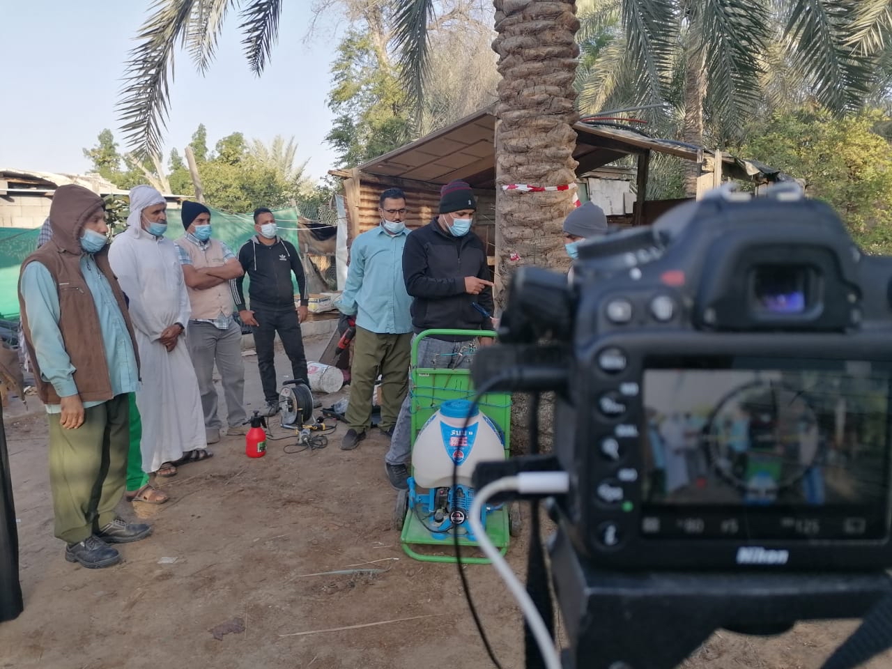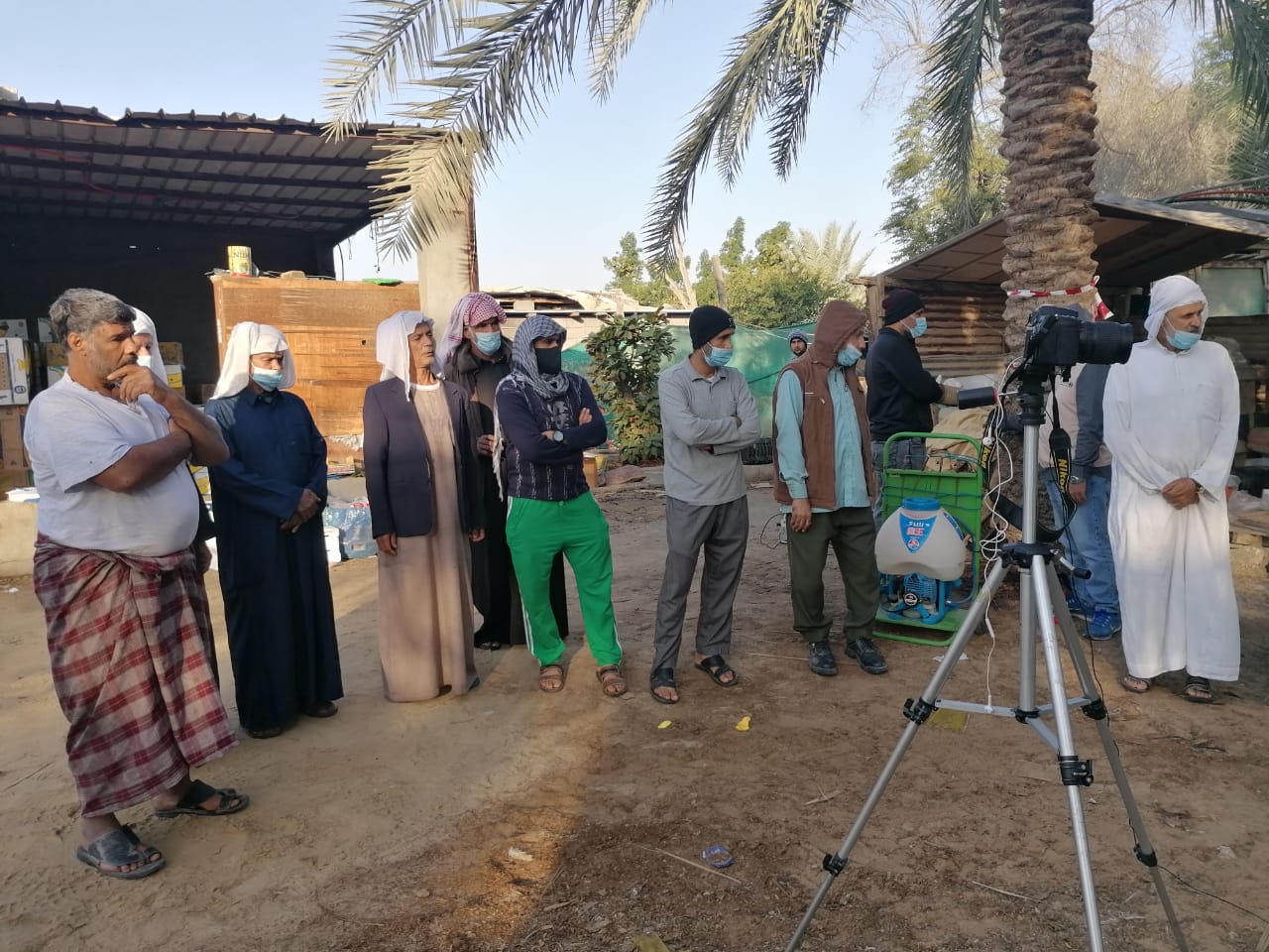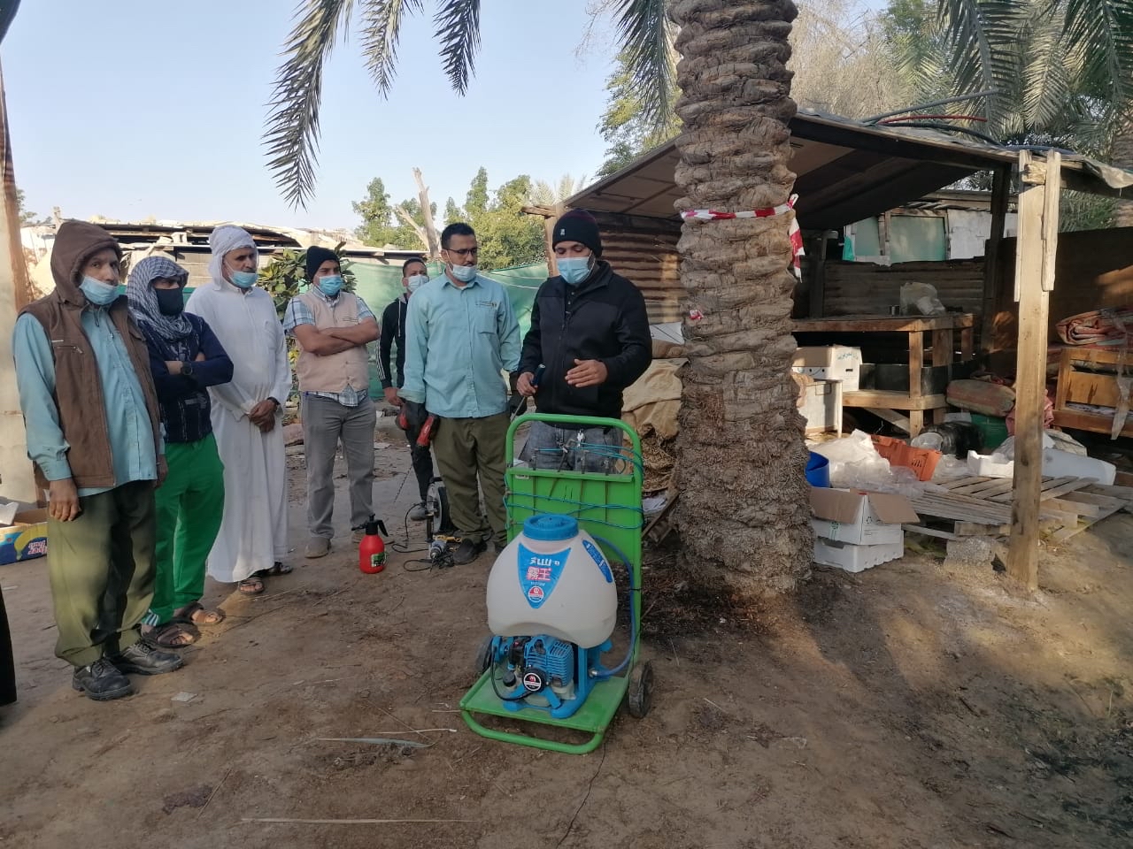 بدأ اليوم الحقلي بشرح عملي بين خلاله م. حبيب العقيلي طريقة العلاج المتبعه لعمليات الفحص والعلاج منذ بداية نشأت البرنامج حتى يومنا الحالي وأهمية معرفة الآفات الحشرية النخيل وطرق مكافحتها.