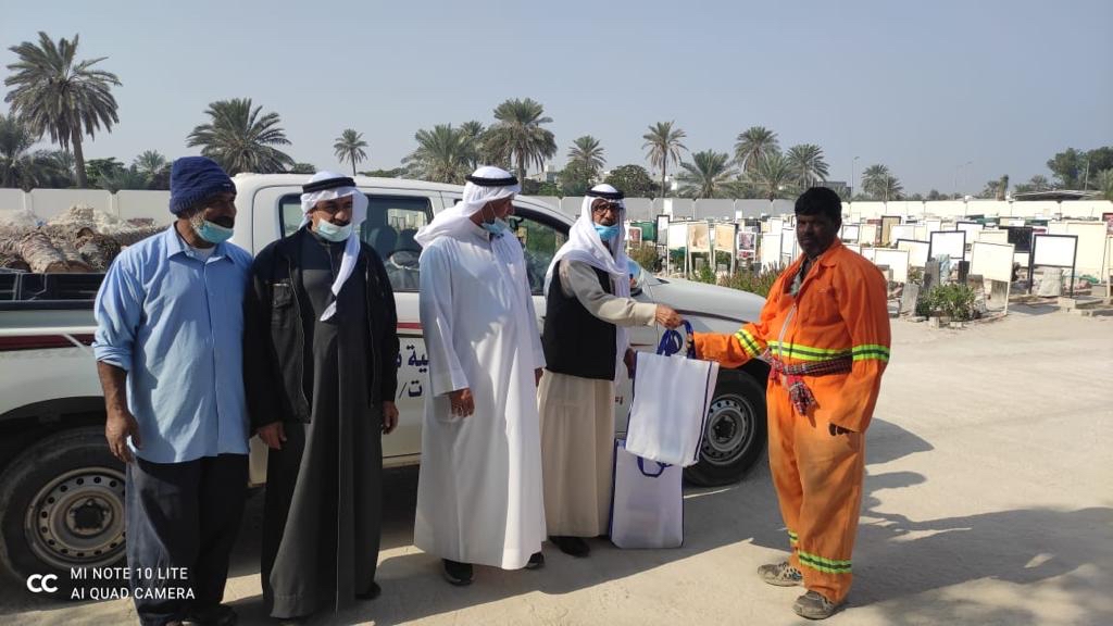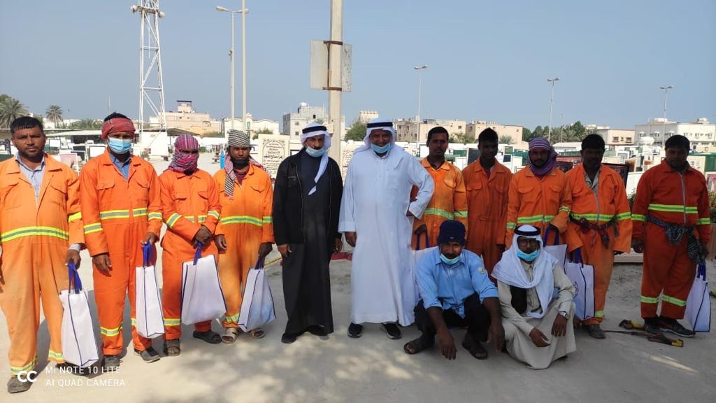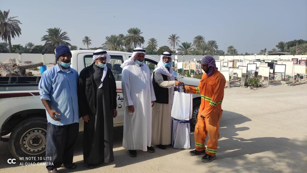 كرم رئيس لجنة المرافق العامة بخيرية تاروت م. محمد النابود، عمال شركة اليمامة التابعة لبلدية تاروت، وذلك نظير جهودهم في تنظيف مقبرتي المصلى والدهر بجزيرة تاروت بشكل دوري.
