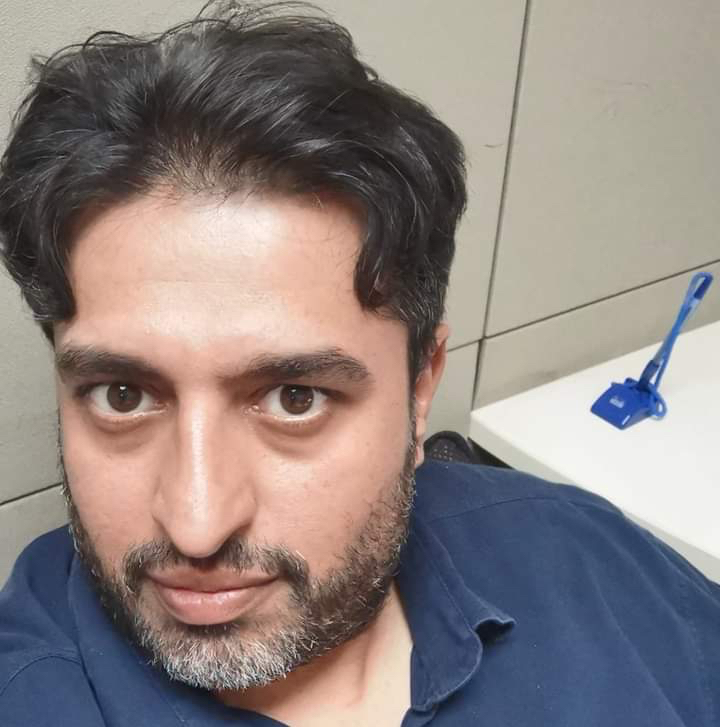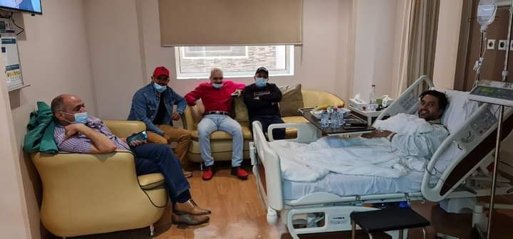 يرقد المهندس مجدي السعيد «أبو ريم» على السرير الأبيض إثر عارض صحي ألم به.