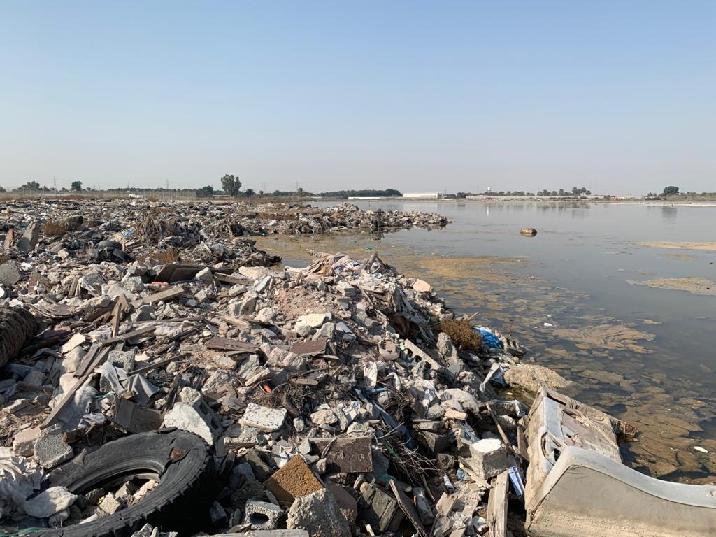 وتبين ان هناك تعديات كثيرة على البحيرة المتكونة قديما من مياه الري الزائدة عن حاجة المزارع المحيطة.
