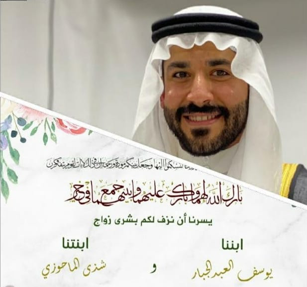 احتفلت عائلة العبدالجبار والماحوزي في القطيف مساء يوم الأربعاء بزفاف الشاب يوسف عبد الحميد علي العبد الجبار على الشابة شذى عبد الرؤوف سعيد الماحوزي وسط فرحة الأهل والأصدقاء ومحبي العريسين.