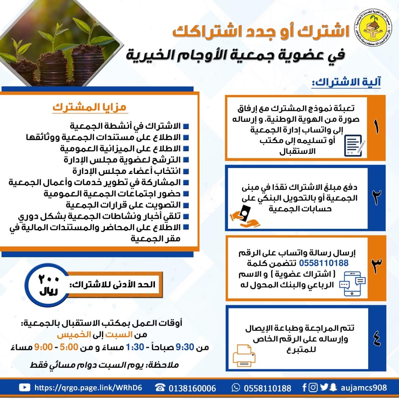 أطلقت خيرية الأوجام، مبادرة هامة لحث الأهالي على الاشتراك السنوي بالجمعية، حملت عنوان ”أنا مشترك“.