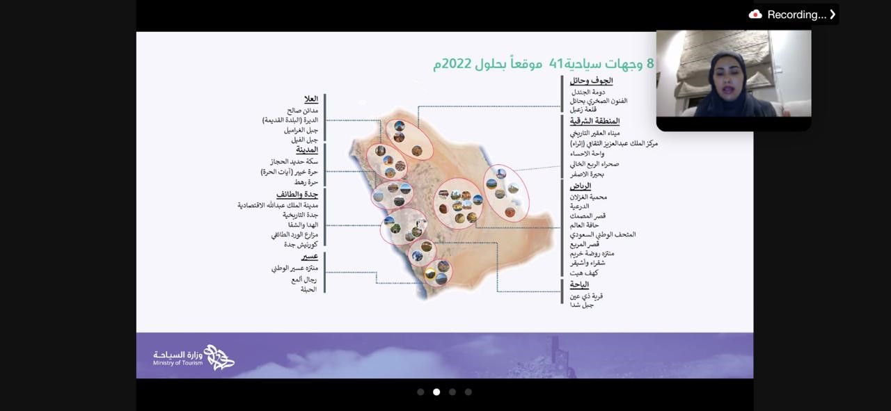 ولفتت إلى أن عدد المواقع السياحية في المنطقة بلغت 18 موقعًا، وأن المشاريع السياحية وصلت إلى 24 مشروعًا، وأن هناك أكثر من 20 مشروعًا سياحيًا يخضع للدراسة حاليًا، لدى صندوق التنمية السياحي.
