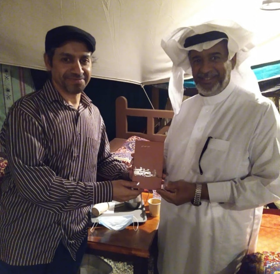 وكان في استقبال الشاعر الشيخ وديوانه الجديد أبرز شعراء المنطقة وهم: الشاعر علي جدعان، الشاعر هاني زين الهاجوج، الشاعر والناقد معبر النهاري، وخالد الحازمي عضو نادي المدينة المنورة الادبي وعضو النادي الأدبي بجازان الذي استقبل الضيف في منزله بحفاوة وترحاب.