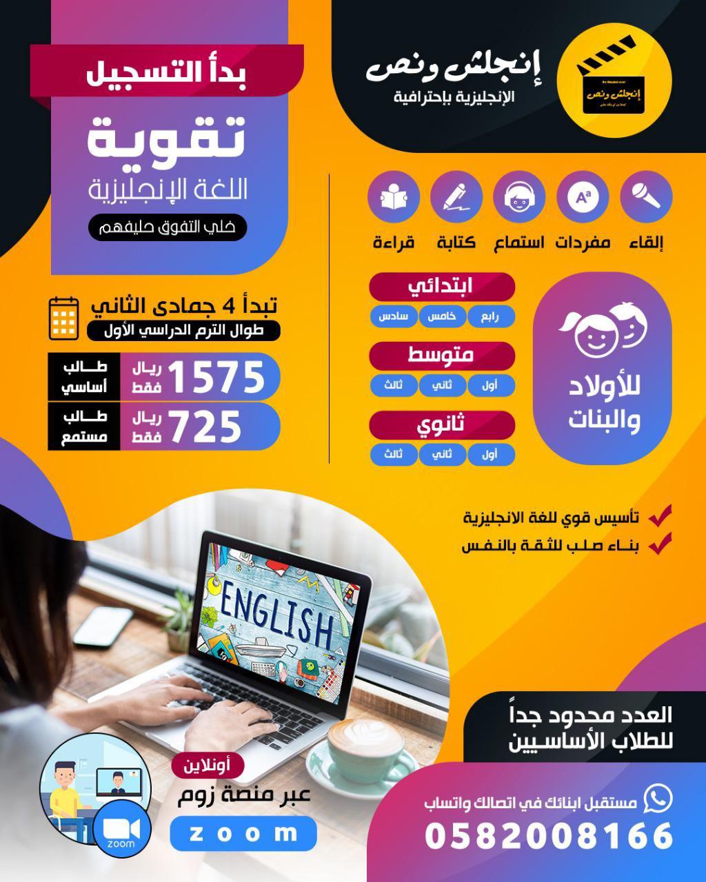عرض ولا في الأحلام - 🇺🇸 تقوية اللغة الانجليزية برنامج تقوية اللغة الانجليزية ب 725 ريال فقط للترم كاملاً