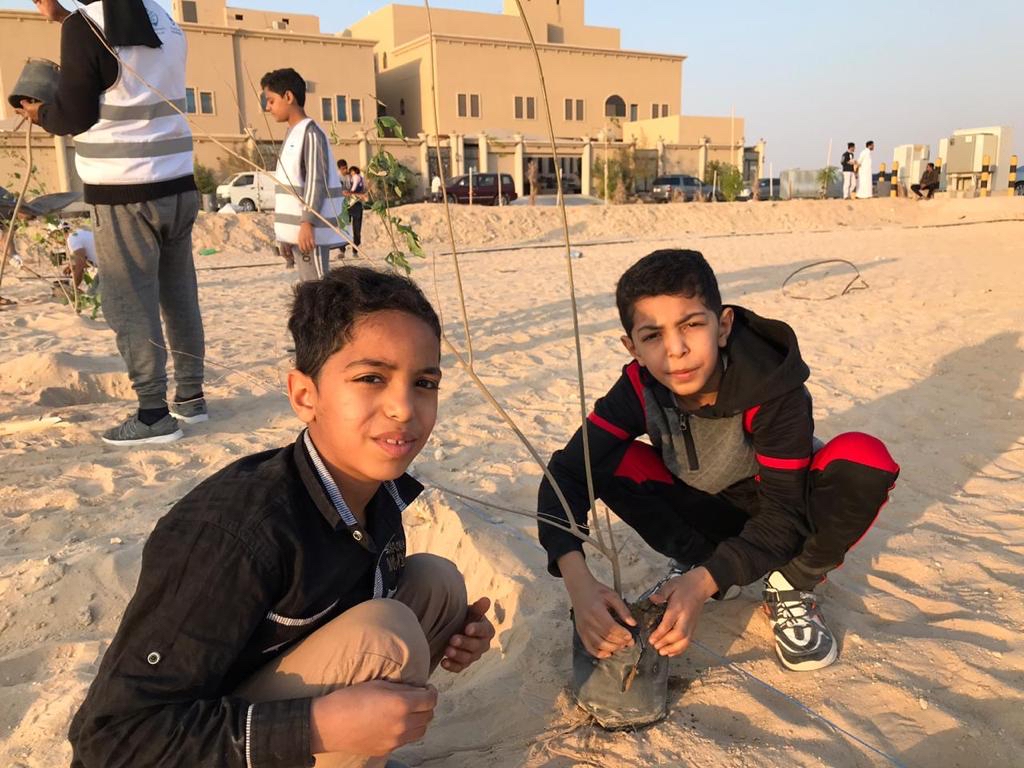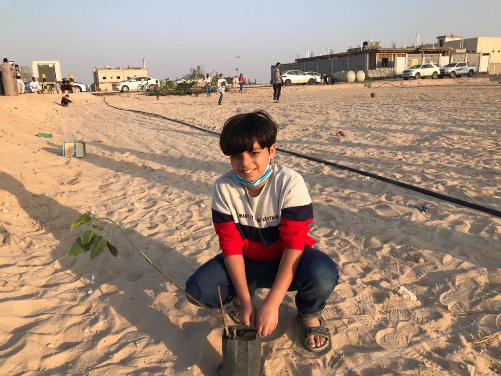 وأحضر الأطفال معهم بطاقات بأسمائهم علقوها على شتلاتهم التي زرعوها لتكون لهم ظلاً في المستقبل، تفعيلاً لمبادرة ”شجرتي“ التي أطلقها المهندس فهد الملحم ضمن مبادرة التشجير.