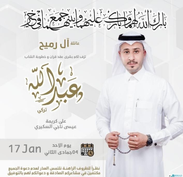 لنشر أخبار الأفراح والمواليد والمناسبات الإجتماعية في محافظة القطيف؛ يرجى التواصل عبر: