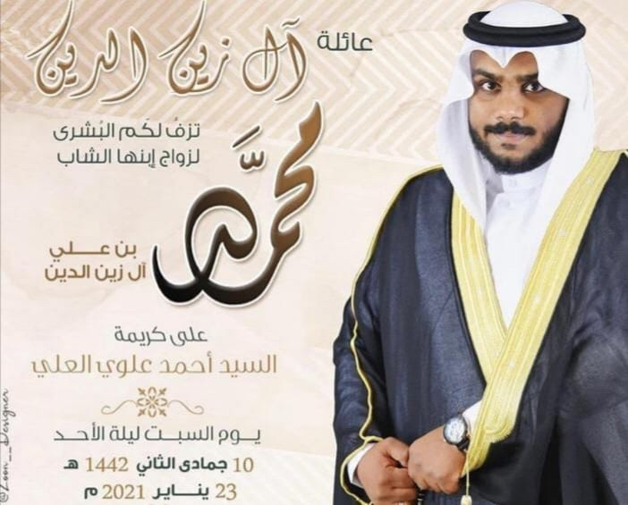 تحتفل عائلة آل زين الدين والعلي في سيهات مساء يوم السبت بزفاف الشاب محمد علي آل زين الدين على كريمة الحاج السيد أحمد السيد علوي العلوي وسط فرحة الأهل والأصدقاء ومحبي العريسين.
