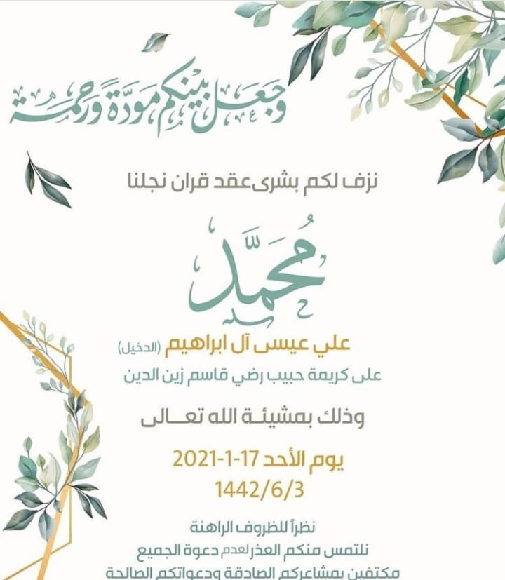 لنشر أخبار الأفراح والمواليد والمناسبات الإجتماعية في محافظة القطيف؛ يرجى التواصل عبر: