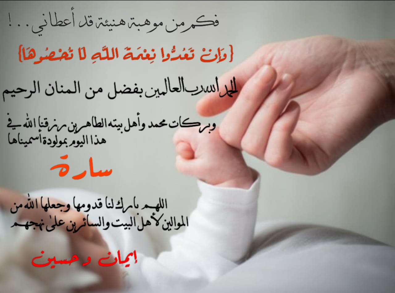 رُزق الشاب حسين عبد المحسن الصادق بمولودة اتفق وحرمه ايمان الشايب الزميلة في صحيفة جهينة الإخبارية على تسميتها «سارة».
