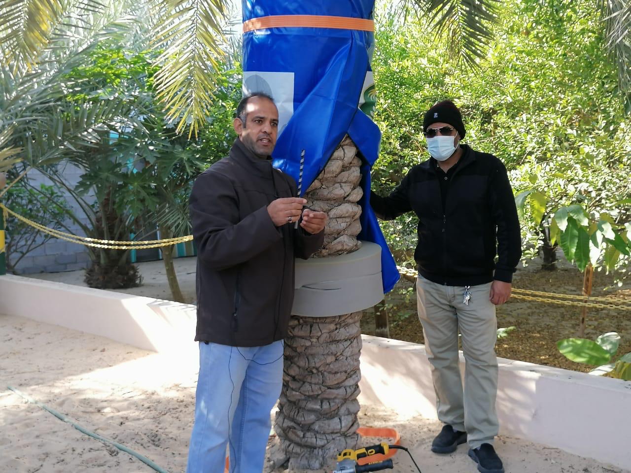 وحث م. المطيري على أهمية الفحص المبكر للنخيل وطريقة علاج النخيل المصاب حسب إستراتيجية الوزارة وضرورة التعاون بين المزارعين والوزارة للوصول للهدف المنشود وتضافر الجهود للقضاء على هذه الحشرة.
