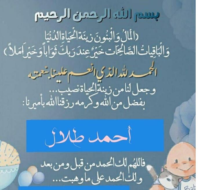 رُزق الشاب طلال محمد آل عيد من عنك «حي العليوات» بمولود اتفق وحرمه على تسميته «أحمد».