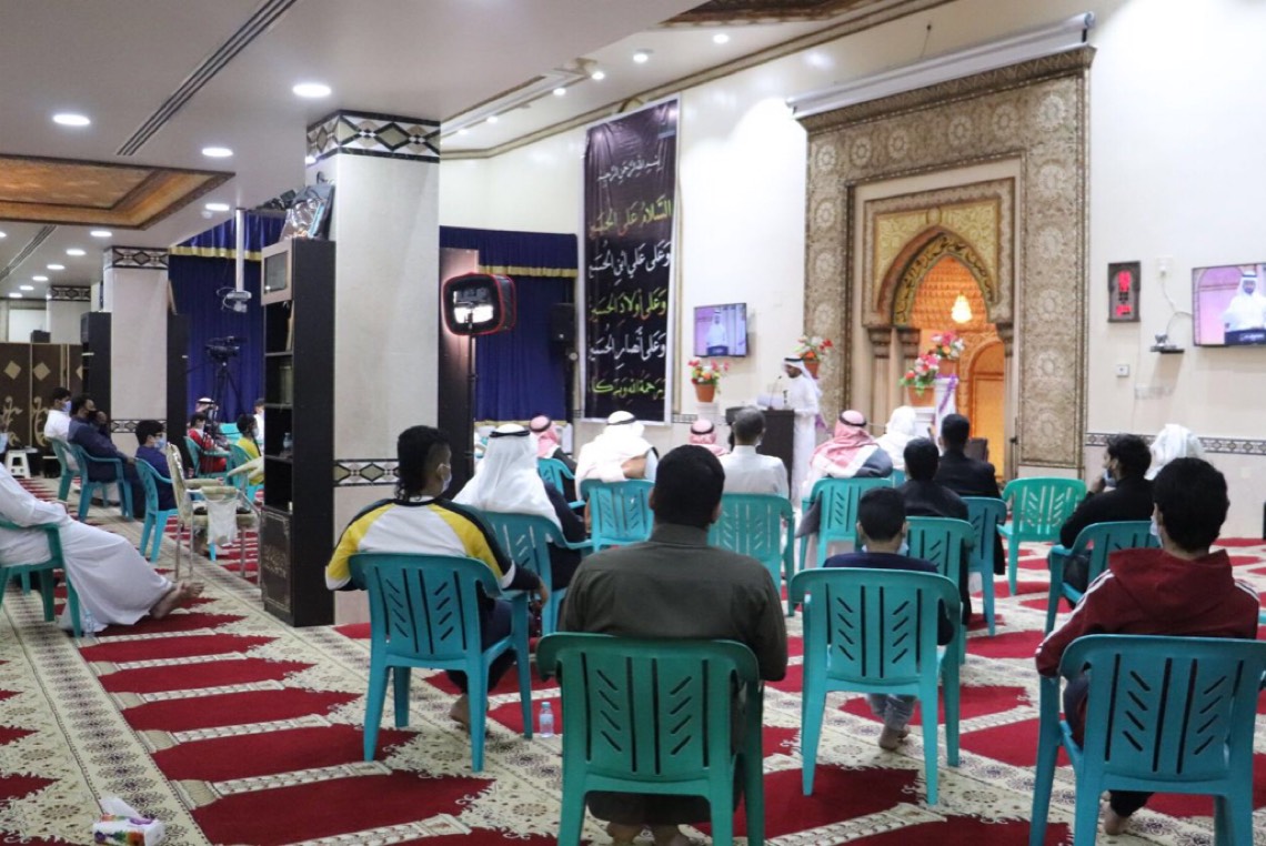 وبدأ مقدم الحفل محمد الحمود بتقديم التهاني والتبريكات للعالم الإسلامي بهذه المناسبة العطرة، واستذكار المرحوم الحاج نعيم عبدالله المكحل وإهداء سورة الفاتحة لروحه، فيما اُستهل الحفل بآيات عطرة من الذكر الحكيم تلاها محمد السيهاتي.