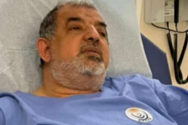 يرقد الشيخ عبد الحميد العباس على السرير الابيض بالمستشفى إثر عارض صحي ألم به.