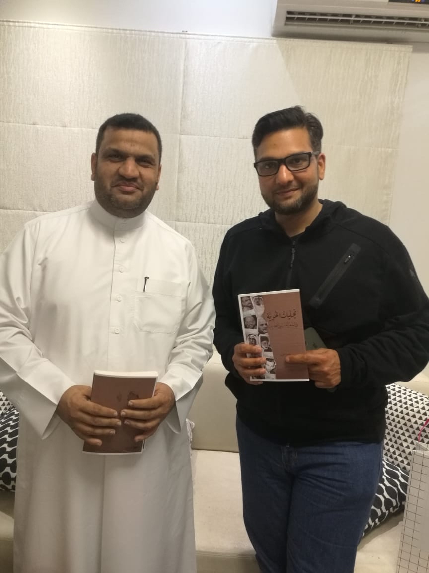 واستضاف الشاعر فريد النمر ضيف القطيف الحجازي الزاهد في منزله الملآن بعمارة الشعر العمراني.