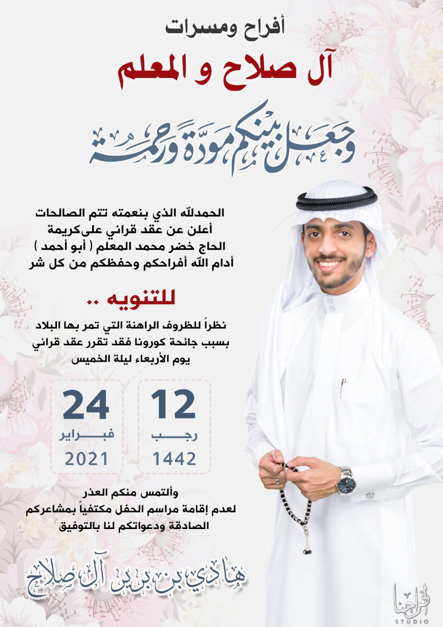 لنشر أخبار الأفراح والمواليد والمناسبات الإجتماعية في محافظة القطيف؛ يرجى التواصل عبر: