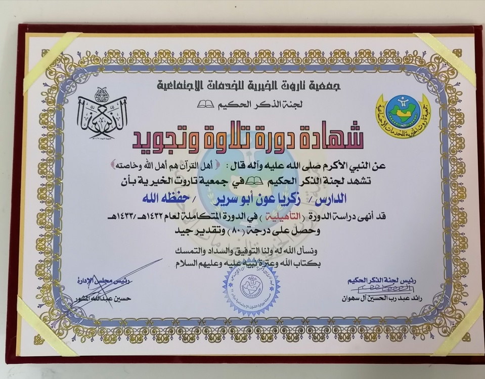 وكذلك وفقت بحضور دورة قرآنية أخرى، في حوزة القطيف الواقعة في الناصرة، لمدة ثلاثة شهور، بعنوان منهاج التدبر والتفسير القرآني، بإشراف المتخصص في العلوم القرآنية سماحة الشيخ الدكتور محمد الخميس، وكانت دورة ممتعة ورائعة، بل تُعد مكملة ومساعدة لفهم القرآن الكريم، وكما وفقنا بعد ذلك، بحضور دورة في اللغة العربية، مع سماحة الشيخ والروائي المبدع منصور آل سيف.