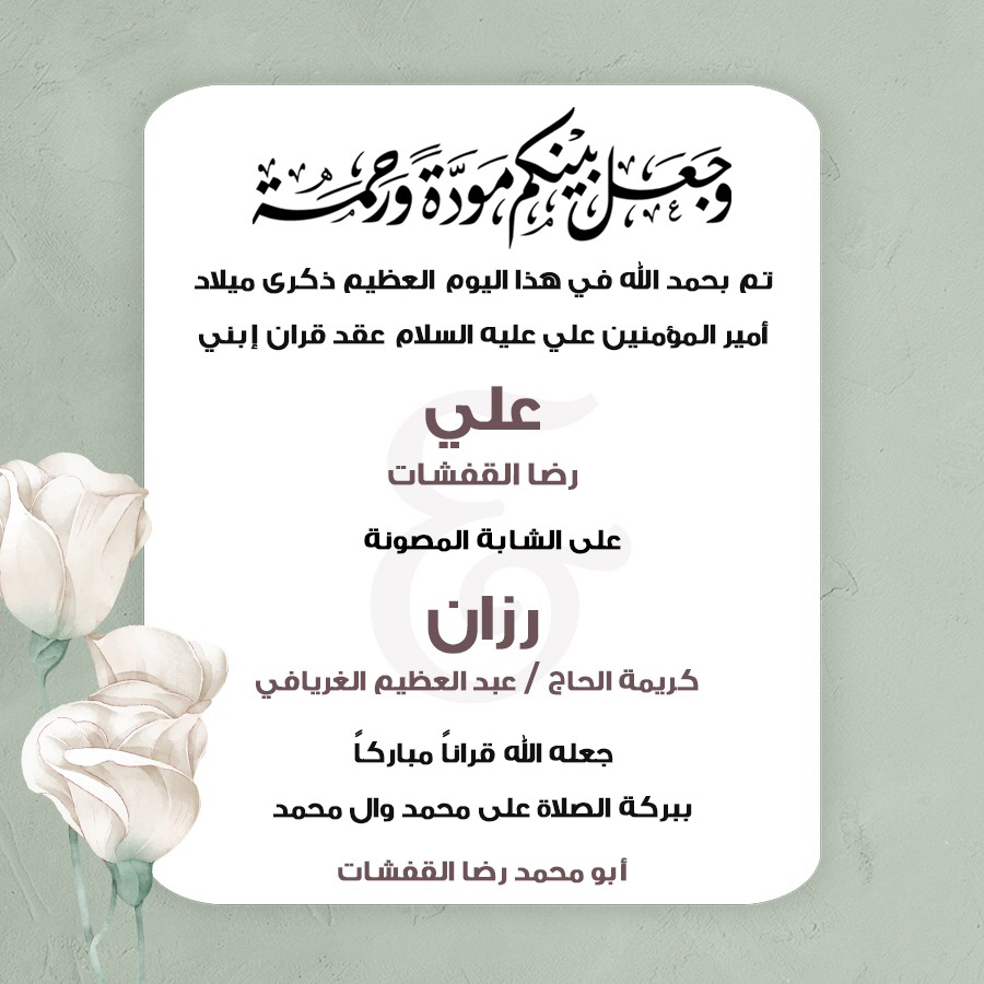 أسرة ”جهينة الإخبارية“ تهنئ العريسين وعائلتيهما وتسأل الله ان يبارك لهما، متمنين لهما حياة سعيدة.