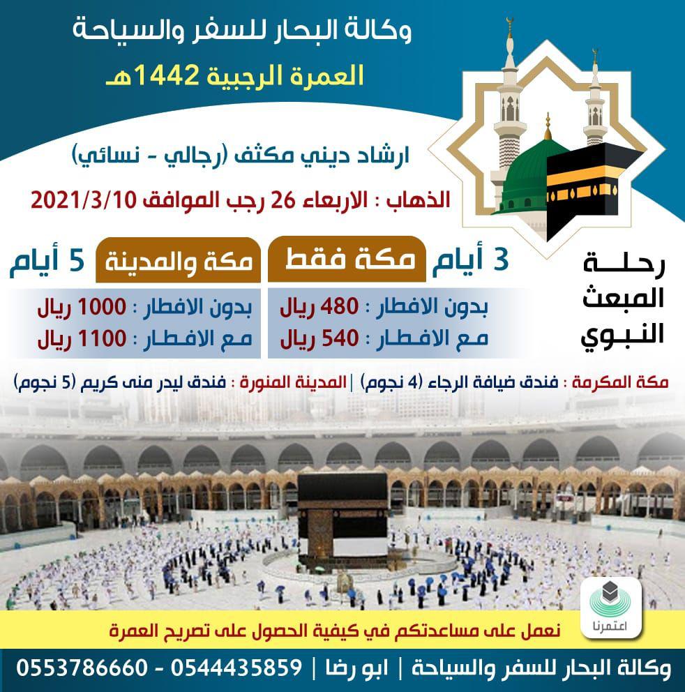 🕋وكالة البحار تعلن عن أخر المقاعد لرحلة الاسراء والمعراج 🕋