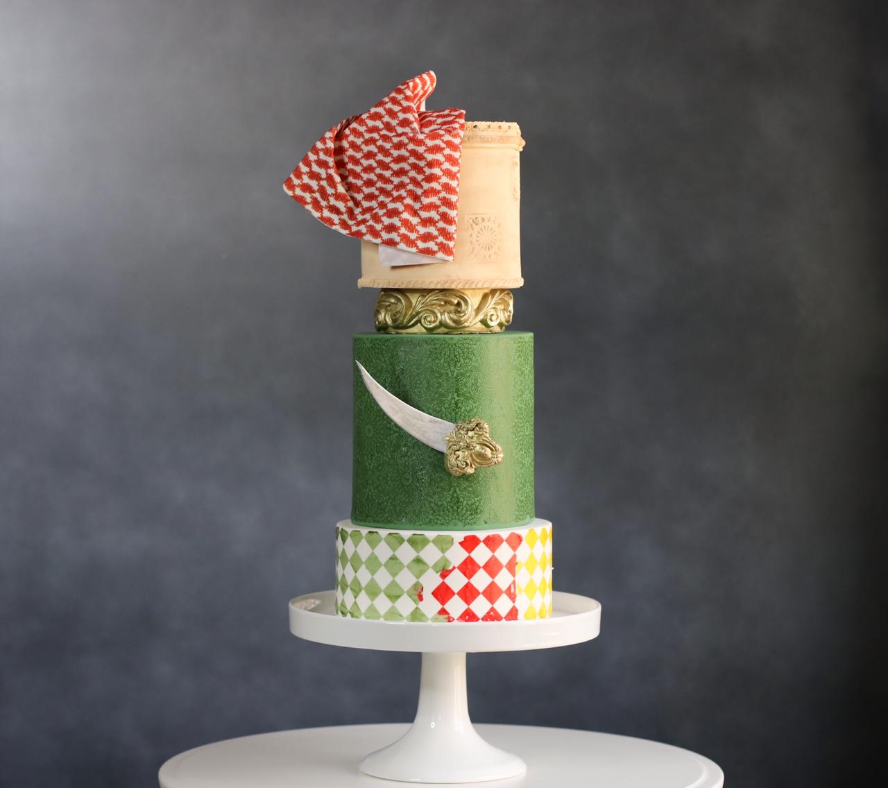 واستوحت في أحد قوالب الكيك الخاصة بالزفاف، تصميما مشابها لمنازل البحر الأبيض المتوسط المتأصل في الساحل الجنوبي لأوروبا والتي تمتاز بطابع السيراميك وأنماط رقيقة وأرستقراطية، حيث يمتزج اللون الفيروزي مع الأبيض ورائحة البحر مع عبق زهور الليمون، ومن أجل نقل مزاج هذا النمط بدقة ”حرصت على أن يحمل هذا القالب تفصيلاً صغيراً من كل ذلك، فعبرت عن السيراميك بتقنية الستنسل“.
