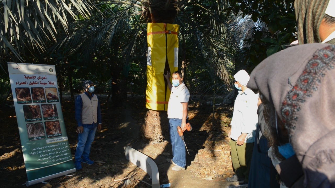 وشدد م. المطيري على أهمية الفحص المبكر للنخيل وطريقة علاج النخيل المصابة حسب إستراتيجية الوزارة وضرورة التعاون بين المزارعين والوزارة للوصول للهدف المنشود وتتضافر الجهود للقضاء على هذه الحشرة.