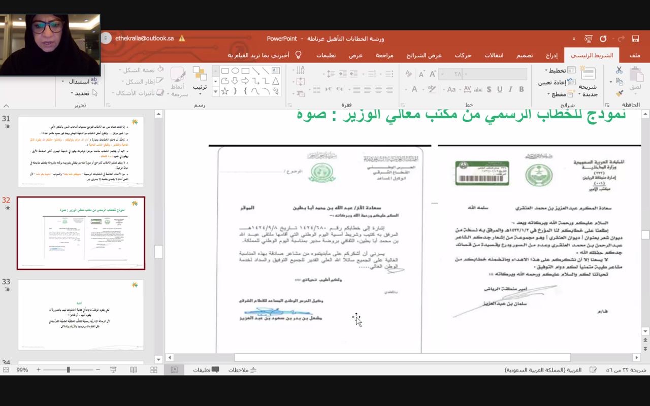 وعرضت ذكر الله بعض النماذج للخطابات الرسمية وناقشتها مع الحضور.