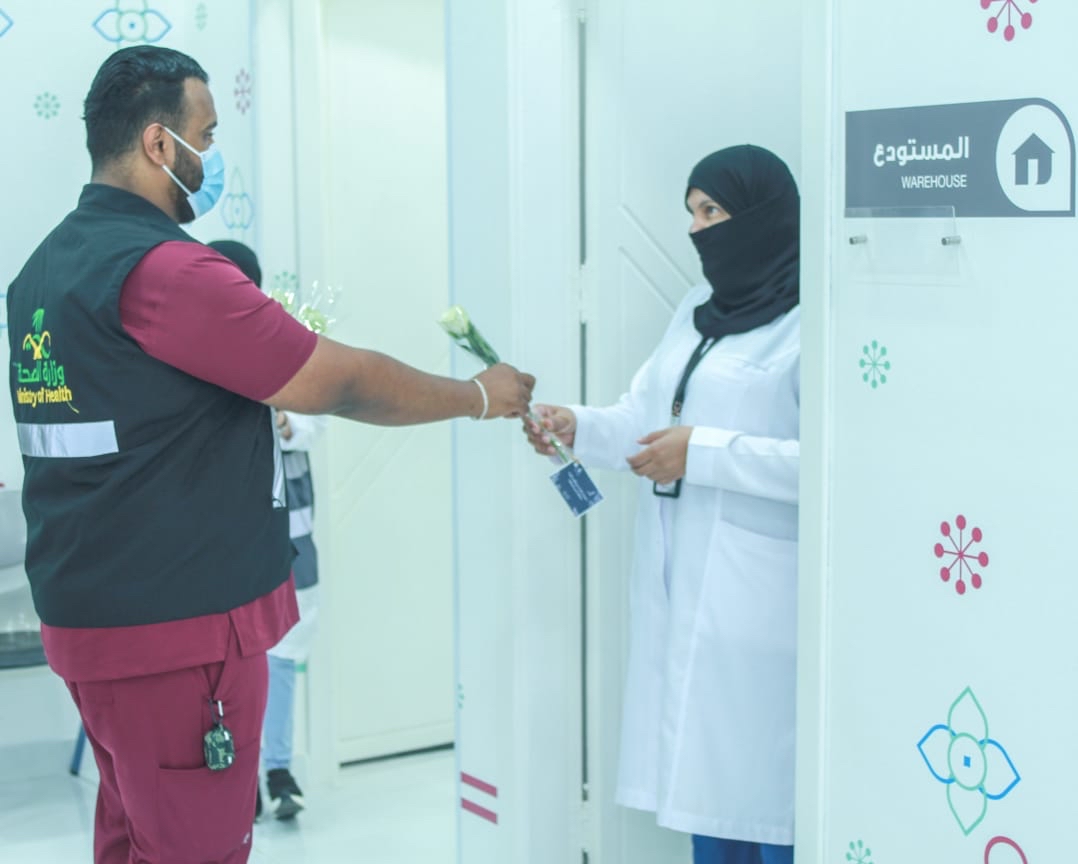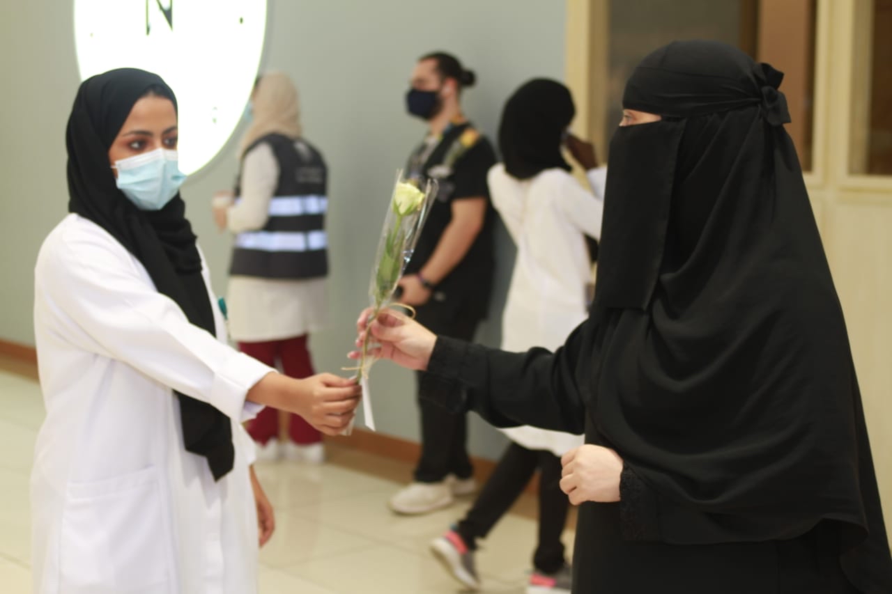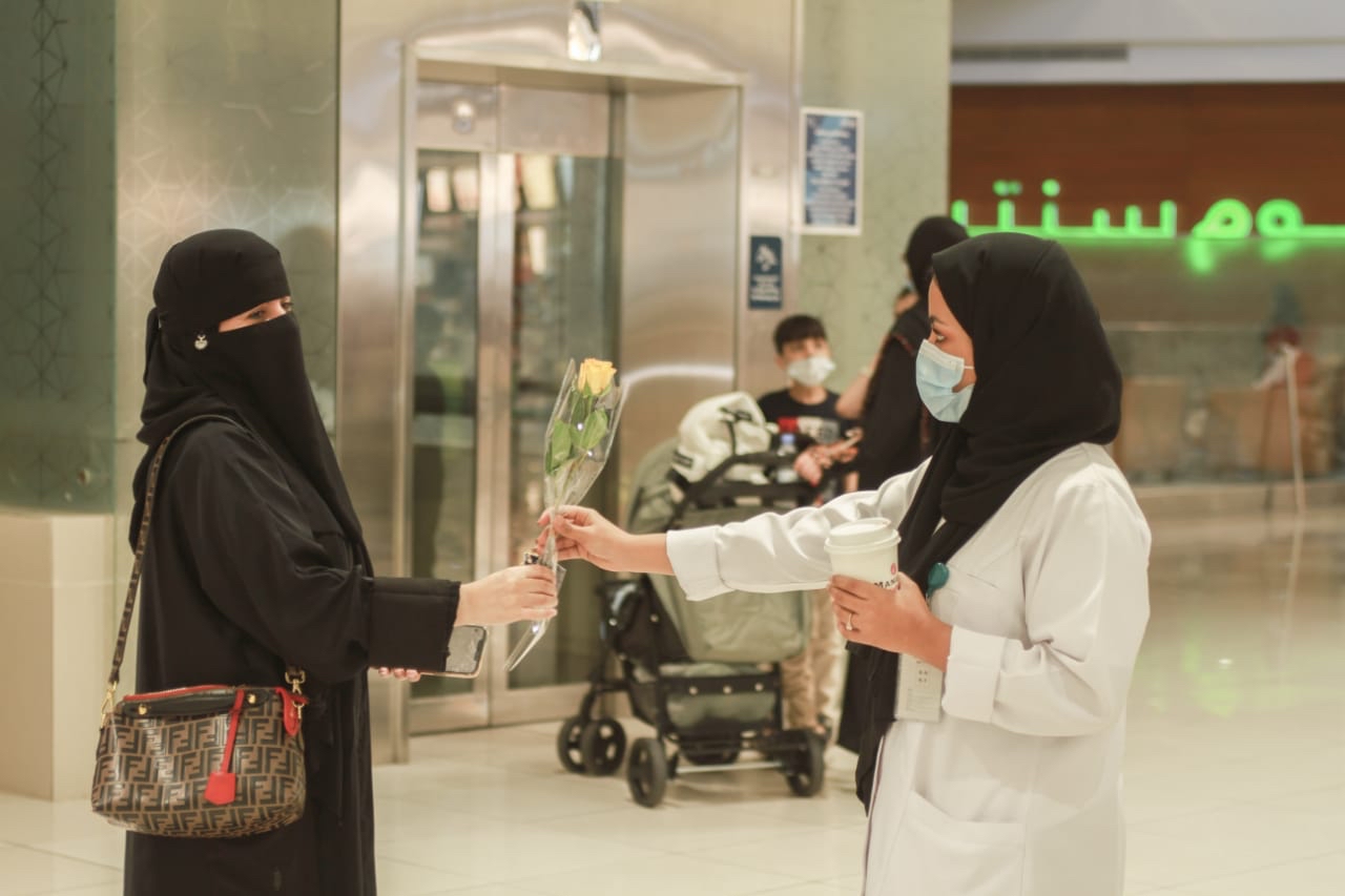 وتخلل الفرحة بتوزيع الابتسامات والورود على الأمهات من قائد فريق التطوعي ”بصمة خير“، ممثلة بالدكتور محمد جوحلي، والدكتورة روان العوفي.