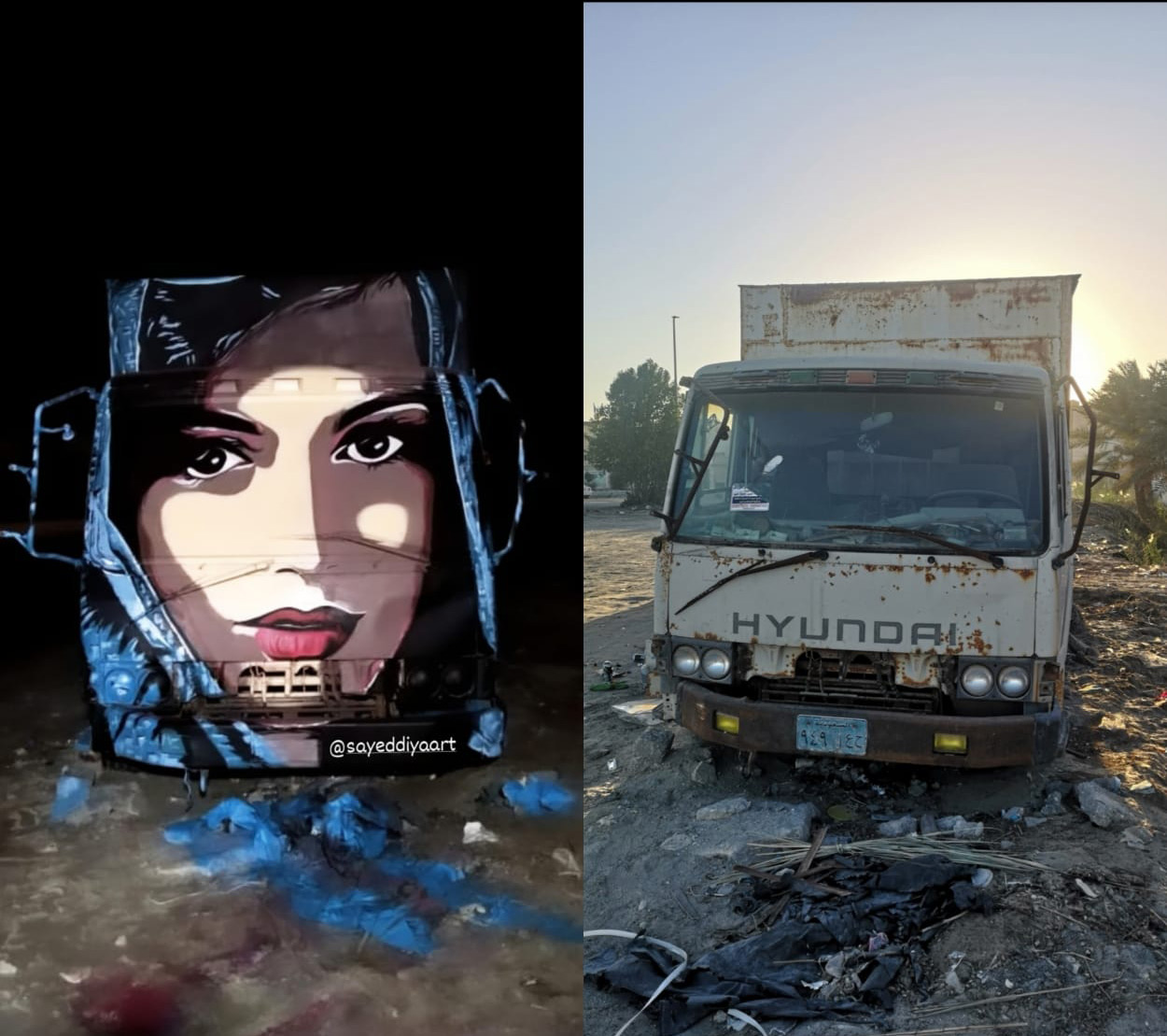 إن العالم زاخر بالفن والفنانين وهذا المحترف العلوي يعمل بأمانه ووعي واتقان، فقد مكثر على عمله الأخير وهي سيارة مهملة ”هيونداي دينا نقل“ فقد عكف على تغيير ملامحها من الموت للروح ومن العدم للوجود من الخردة «السكراب» إلى الاقتناء والجمال المتمثل بوجه فتاة في غاية الروعة والأنوثة، وتلك السيارة قريب من مستوصف جمعية مضر الطبي بالقديح عند الطريق المؤدي للقديح العوامية تحديدا «براحة» بجانب مزارعة.