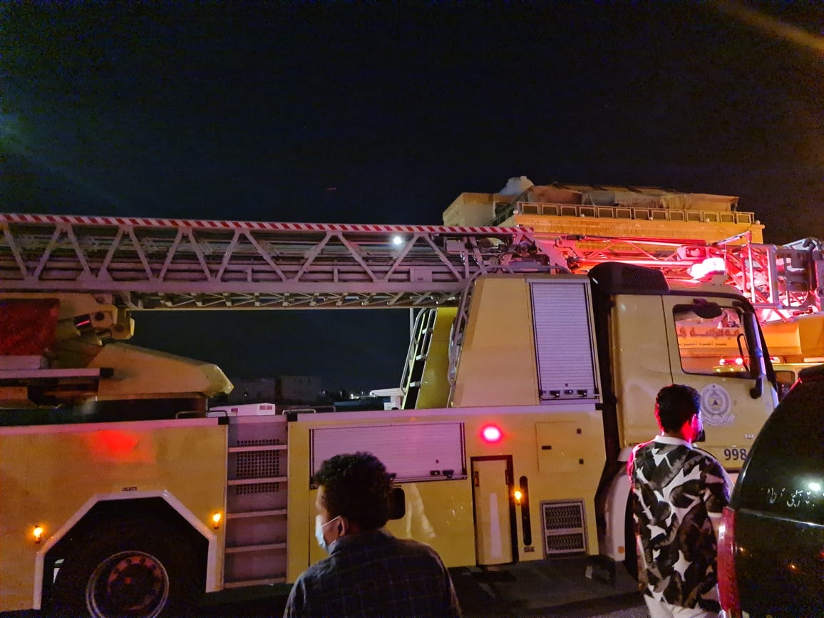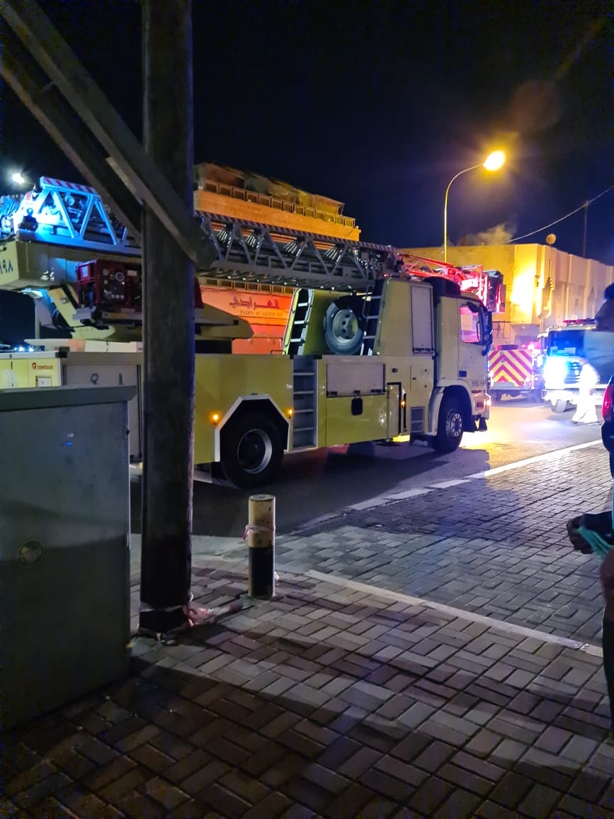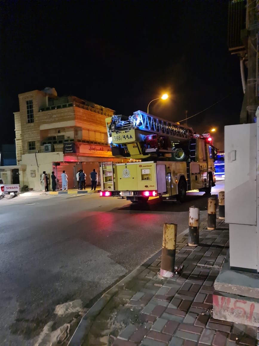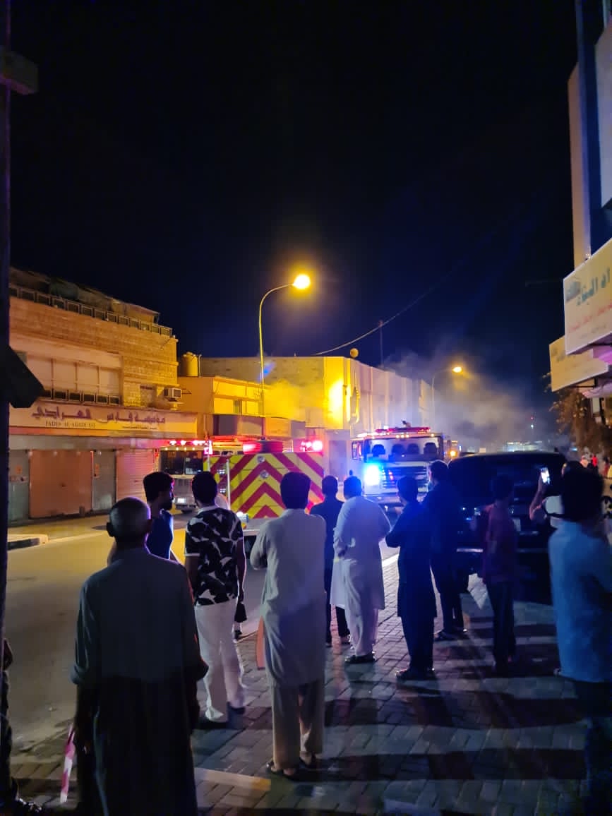 اندلع حريق قبل قليل في جزء من سكن عمال بحي الحوامي في جزيرة تاروت حيث باشرت فرق الإطفاء والهلال الاحمر السعودي الحادثة.