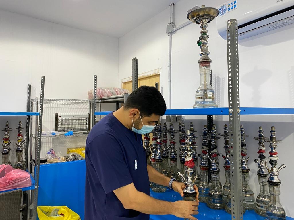 واوضحت البلدية، ان الإجراءات الاحترازية المخصصة لتداول الشيشة والمعسلات تتضمن العديد من الاشتراطات منها تحصين كافة العمالة في تلك المنشآت وعدم السماح للعمالة غير المحصنة بالعمل فيها وكذلك تخصيص الشيشة لشخص واحد وعدم السماح باستخدامها لاكثر من شخص وكذلك استخدام الشيشة لمرة واحدة يوما.