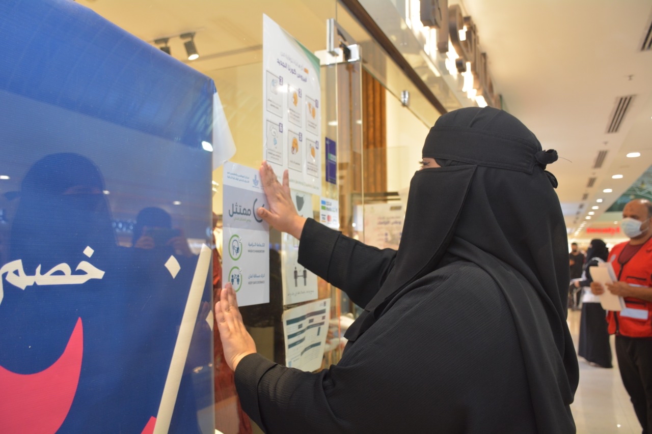 وأوضحت بأن الجولات الرقابية والحملات التوعوية التي يتم تكثيفها؛ تهدف الى رفع مستوى الالتزام ورفع الوعي لدى المنشآت والعاملين فيها، وتفعيل مبادرة ”ممتثل“ بكافة مدن ومحافظات المنطقة.