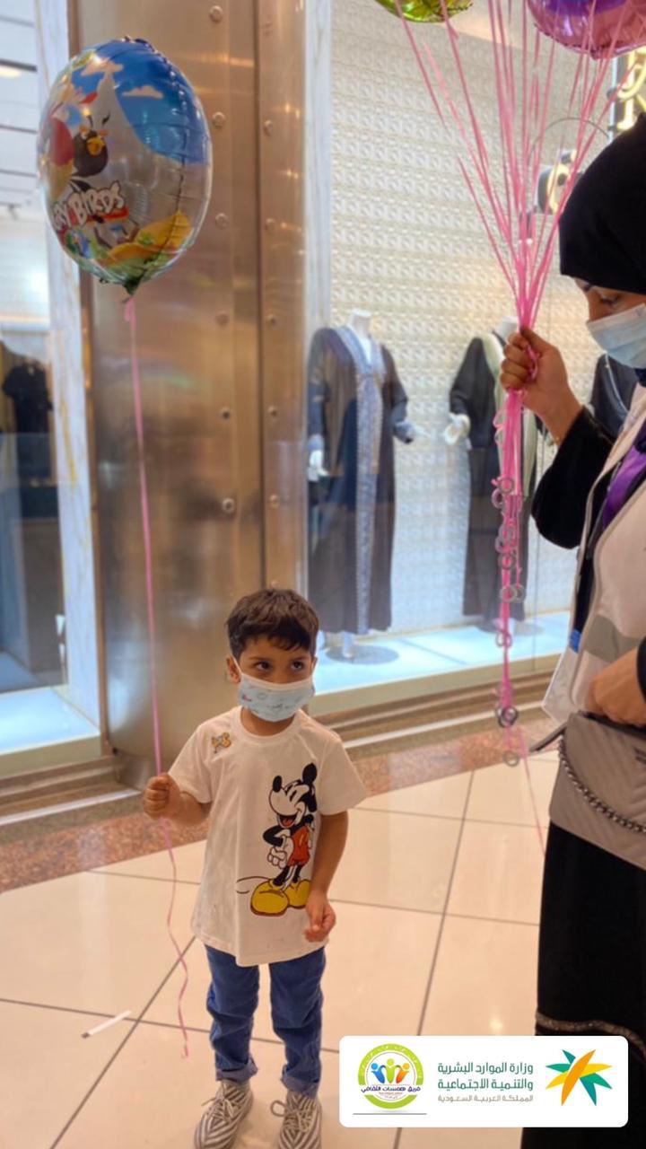 وقدمت زينب القطان، البالونات، إهداء خاص منها لكل طفل وطفلة بهدف رسم الابتسامة على محياهم الجميل.