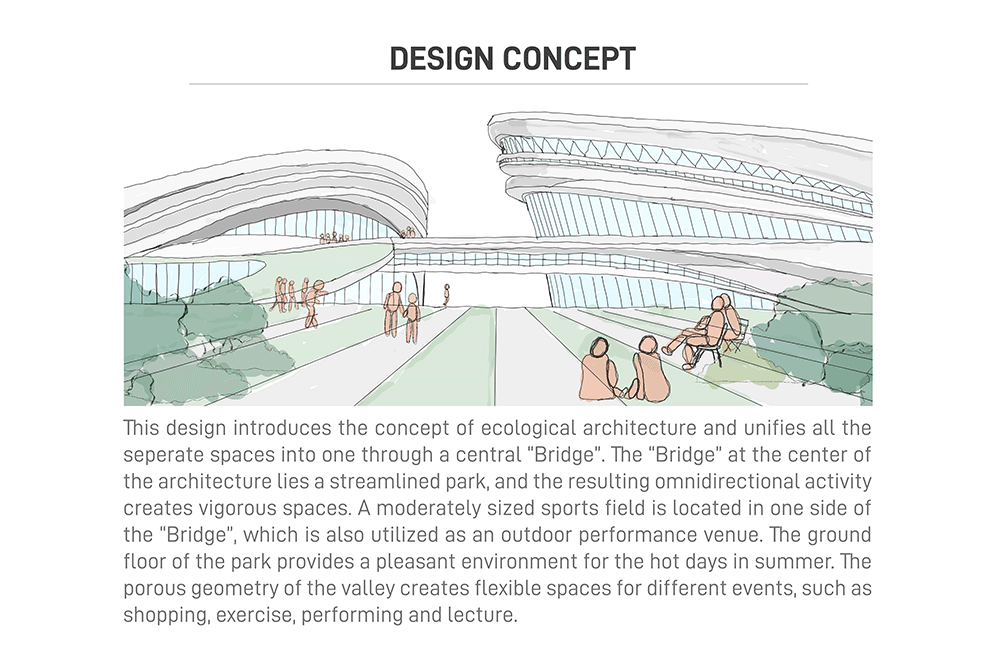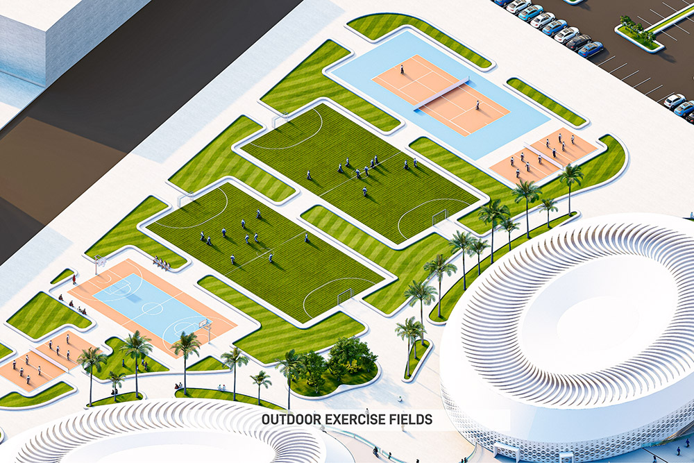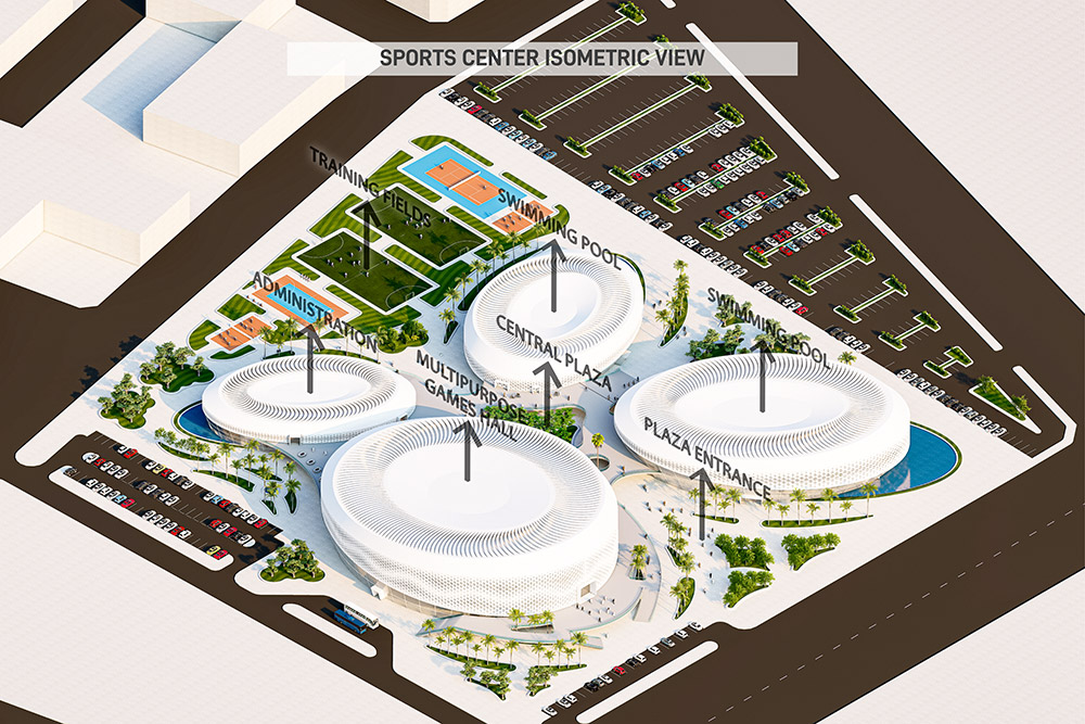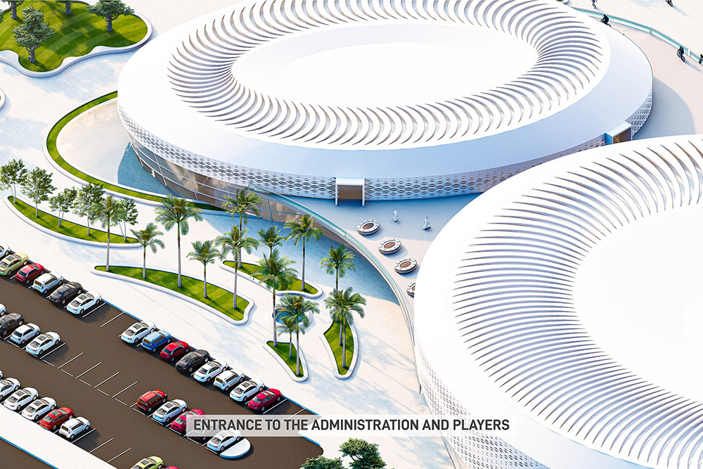 المشروع الذي صممه الكوي يقع على مساحة 67,000 متر مربع، وهي مساحة أرض النادي، ويتكون من صالة رياضية مغلقة رئيسية، ومسبح أولمبي، وصالة تمارين وصالة أخرى للألعاب الفردية، وملاعب خارجية للتدريب، ويضاف إلى هذه الصالات مكاتب مجلس الإدارة.