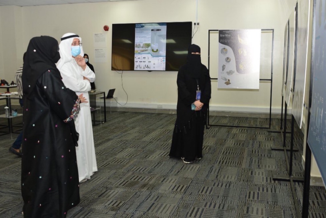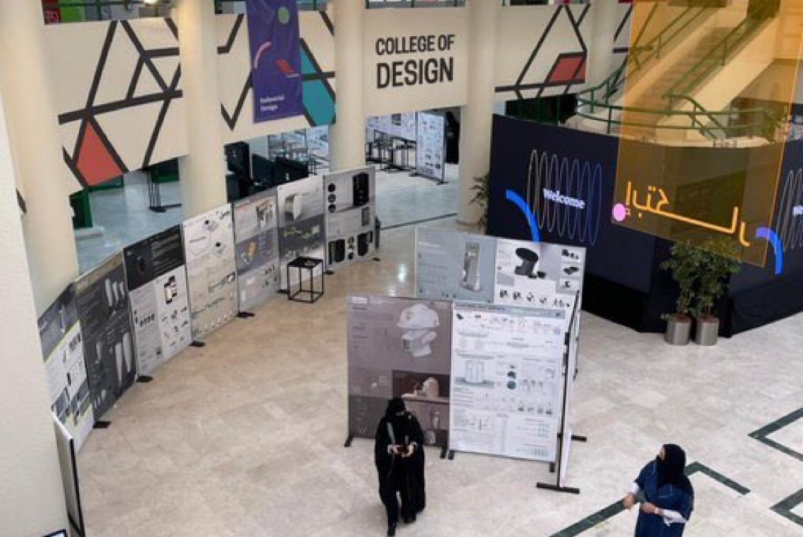وفيما يتعلق قسم التصميم الصناعي، فقد لفتت د. شكري إلى مشروع تطوير وتنفيذ منتج من أعمال إحدى الطالبات بالتعاون مع مؤسسة شكل، ومشروع مسابقة مركز الملك عبدالعزيز الثقافي إثراء، لتطوير الحرف في المملكة.
