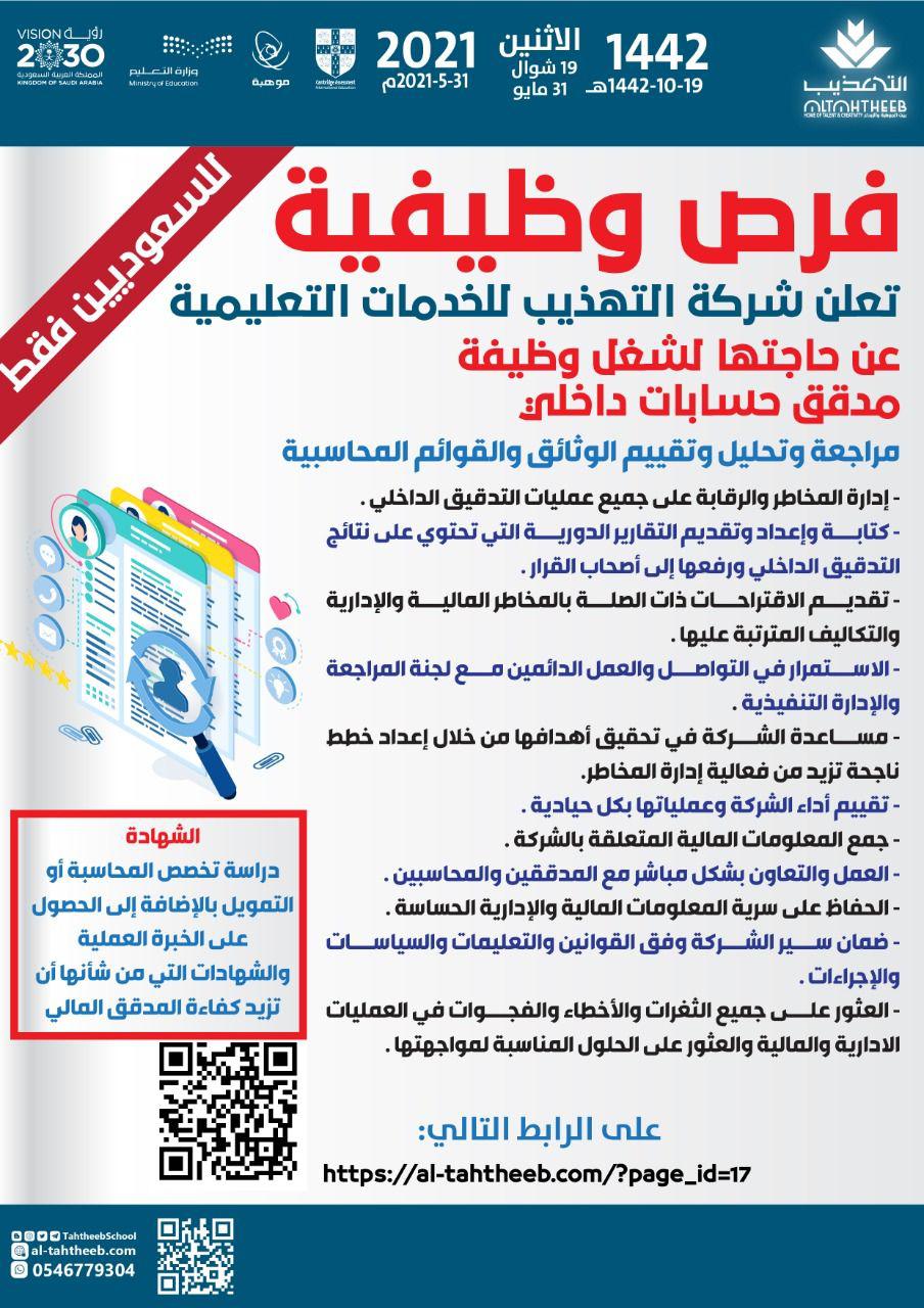 تعلن شركة التهذيب للخدمات التعليمية عن حاجتها لتوظيف: