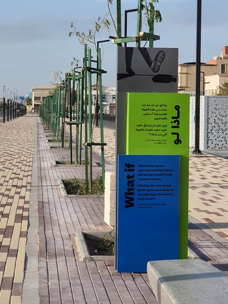 وأضاف المتحدث الرسمي بأن الممشى يتضمن مسارًا تفاعليًا للأطفال، بمسارين من الإنترلوك بعرض 4 أمتار لكل مسار، وطول 500 متر بتصميم عصري، ويتوسط المسارين منطقة بعرض مترين بها أحواض زراعة لأشجار الظل والشجيرات المزهرة وكراسٍ للجلوس بتصميم وتصنيع عصري وأعمدة إنارة ديكورية بارتفاع 5 أمتار لإضاءة الممشى، كما يحتوي على مسار تفاعلي على طريقة ”Tactical Urbanism“ بالأسفلت الملون برسومات وألعاب تعليمية وتفاعلية للأطفال بطريقة عصرية وجذابة، بالإضافة إلى لوحات توعوية إرشادية للزوار.