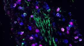 الصورة: صورة مجهر فلورسنسي للخلايا العصبية المتميزة جينيًا في العقدة العقداء
