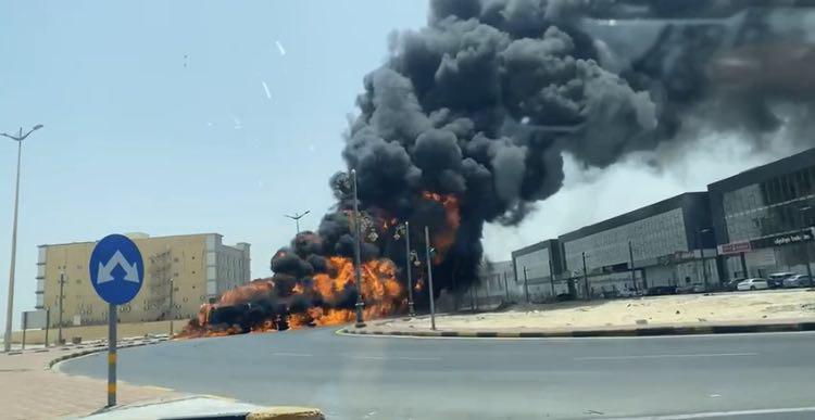 وبحسب شهود عيان أن الحريق أدى إلى احتراق الصهريج بالكامل، ولم ترصد أي إصابة، فيما تقوم إدارة الدفاع المدني بالتحقيق في اسبابه.