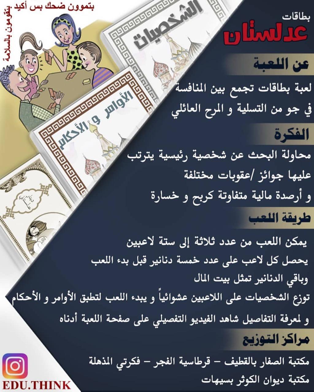 لعبة "عدلستان " لعبة بطاقات تجمع بين المنافسة في جو من التسلية والمرح العائلي..