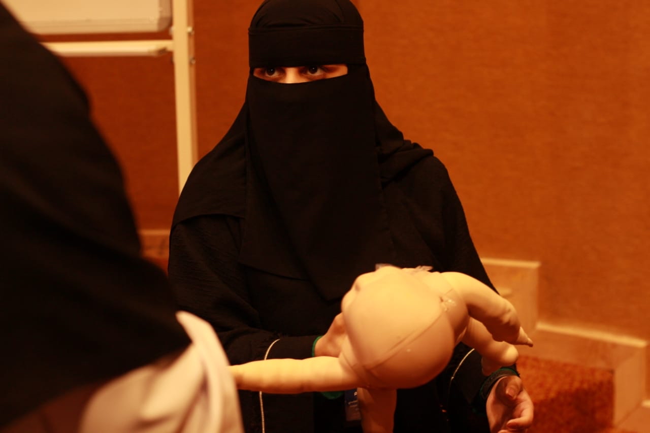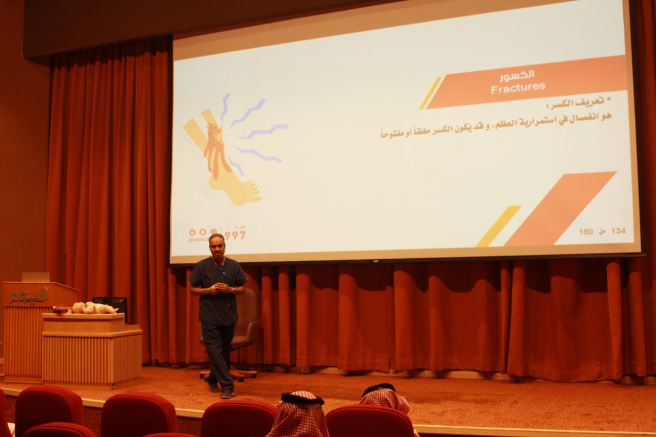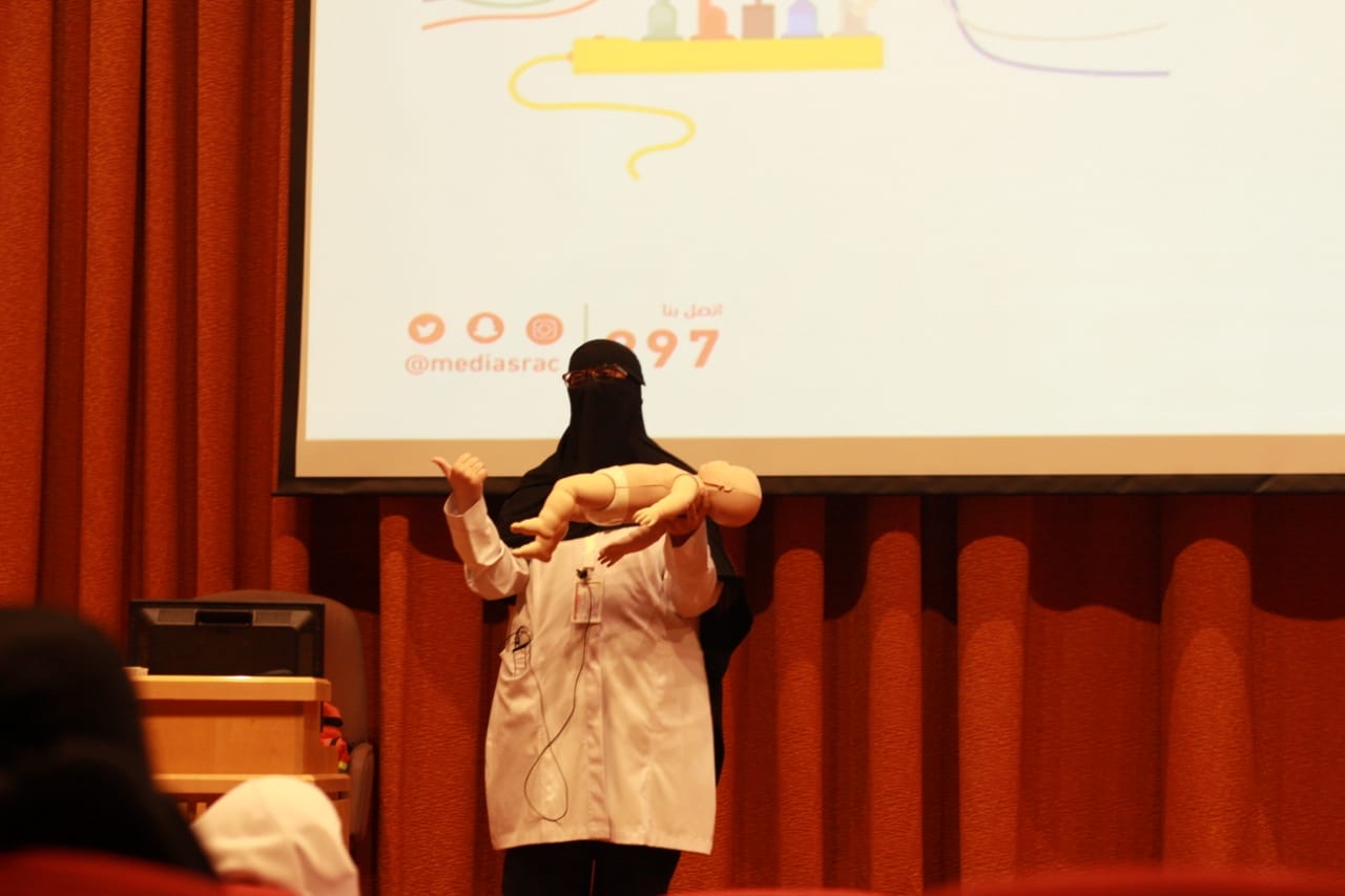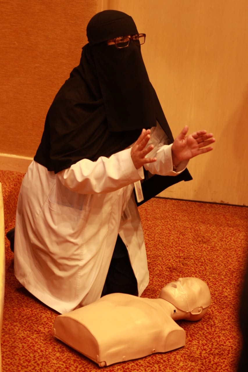 أما القسم الأخر فكان عبارة عن تطبيق عملي يتم من خلاله تدريب المسعف على تطبيق المهارات الإسعافية على الدمى التدريبية؛ ليتسنى لجميع المتدربين فهم واكتساب مهارات الإسعافات الأولية جيداً وتطبيقها عند الحاجة إليها.