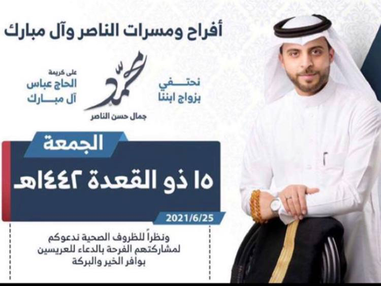 تحتفل عائلة الناصر وآل مبارك في الأوجام مساء يوم الجمعة بزفاف الشاب محمد جمال حسن الناصر على كريمة الحاج عباس آل مبارك وسط فرحة الأهل والأصدقاء ومحبي العريسين.