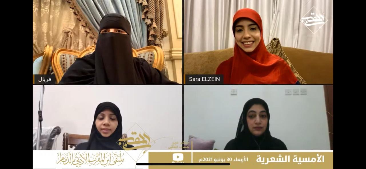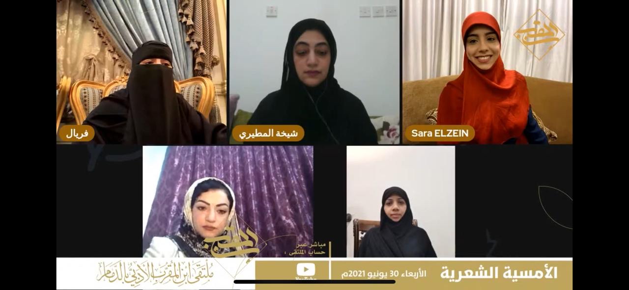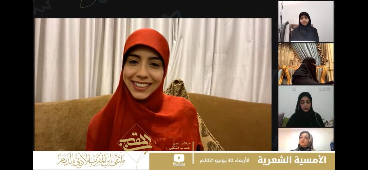 بث ملتقى ابن المقرب الأدبي بالدمام على منصته في اليوتيوب مساء الأربعاء أمسية شعرية ضمت أربع شاعرات من الوطن العربي.
