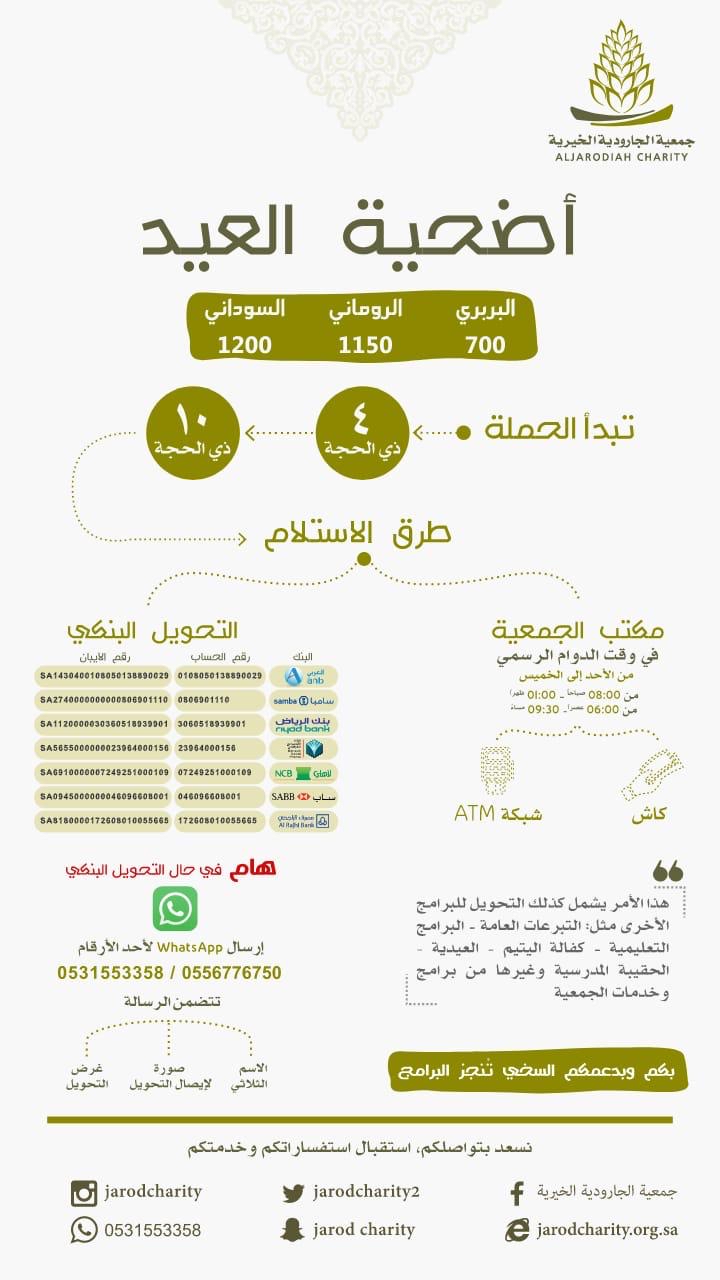 أطلقت جمعية الجارودية الخيرية برنامجها السنوي أضحية العيد الذي يتزامن مع حلول عيد الأضحى المبارك.