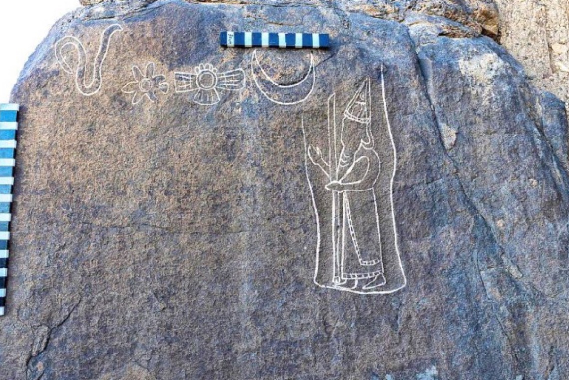 ويتكون الاكتشاف من نقش على صخرة بازلتية تجسد «نابونيد» ممسكا الصولجان أمام رموز دينية، مع وجود نص مسماري في نحو 26 سطراً، ما يعد أطول نص كتابي يُعثر عليه بالسعودية حتى الآن.