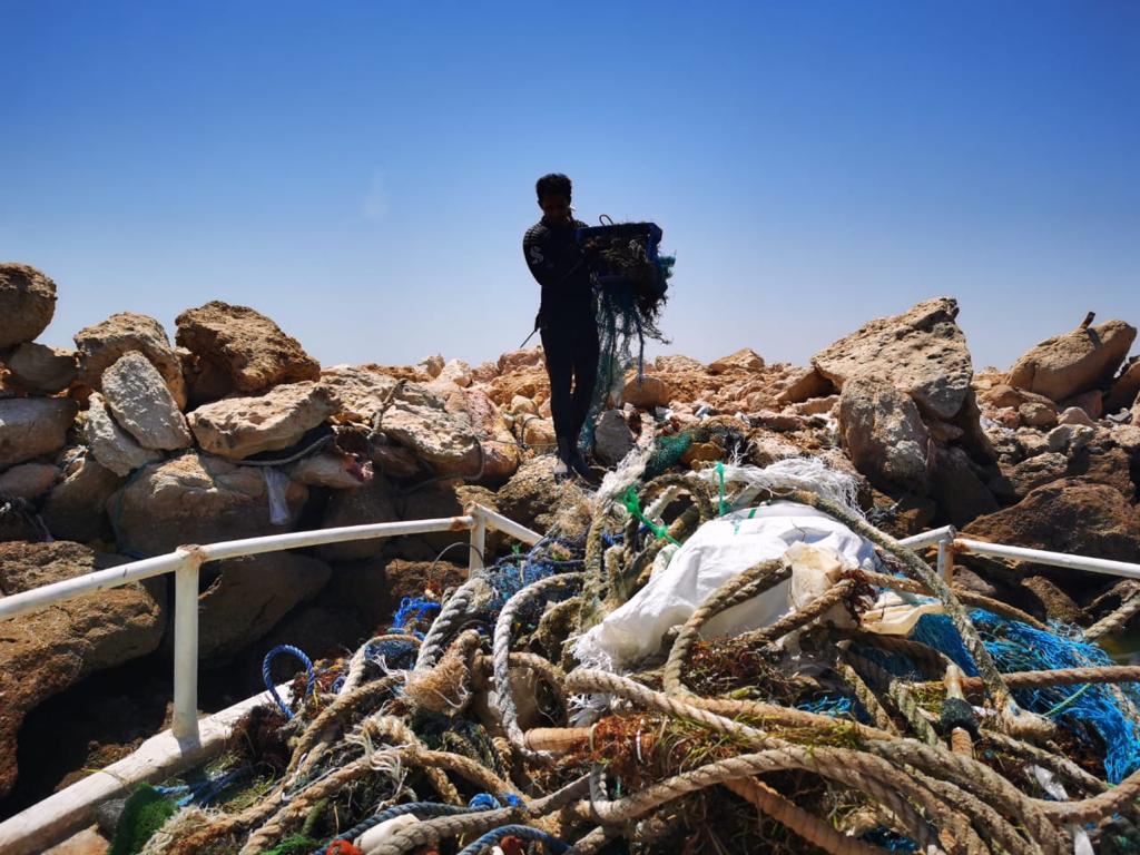 أسفرت الحملات عن رفع 900 كيلوجرام من الشباك والمخلفات البحرية، بمشاركة إحدى الشركات وبالتعاون مع حرس الحدود.