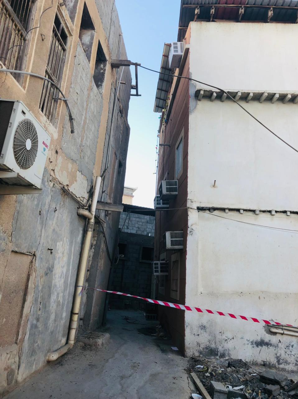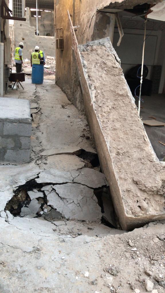 وأخلت الجهات المختصة البيوت الثمانية من الأهالي بالنظر إلى تعرضها إلى انهيار وشيك على الأرجح.